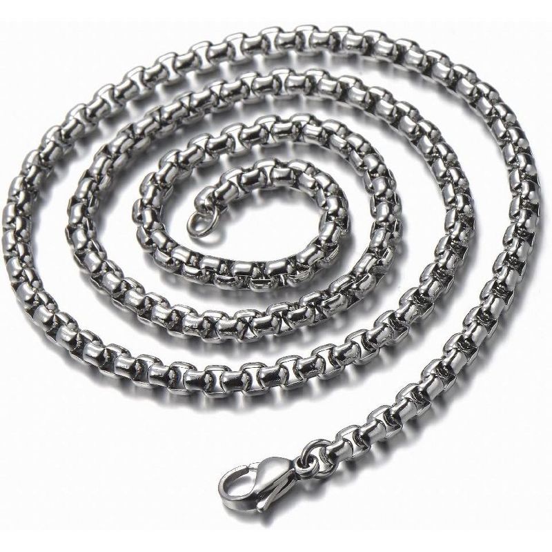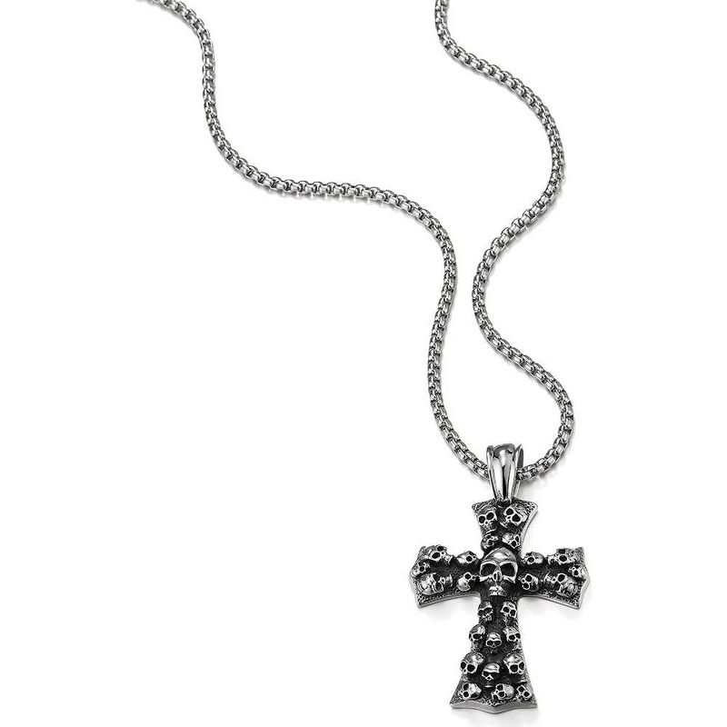 Mens Large Gothic Vintage Skulls Cross Pendant Necklace of Steel, Wheat Chain