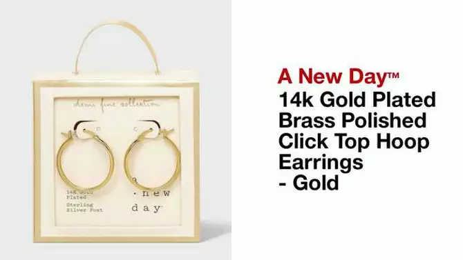 14k Gold Plated Cubic Zirconia Brass Polished Click Top Hoop Earrings - A New Day™ Gold: Sterling Silver, Nickel-Free, 1.036" Length