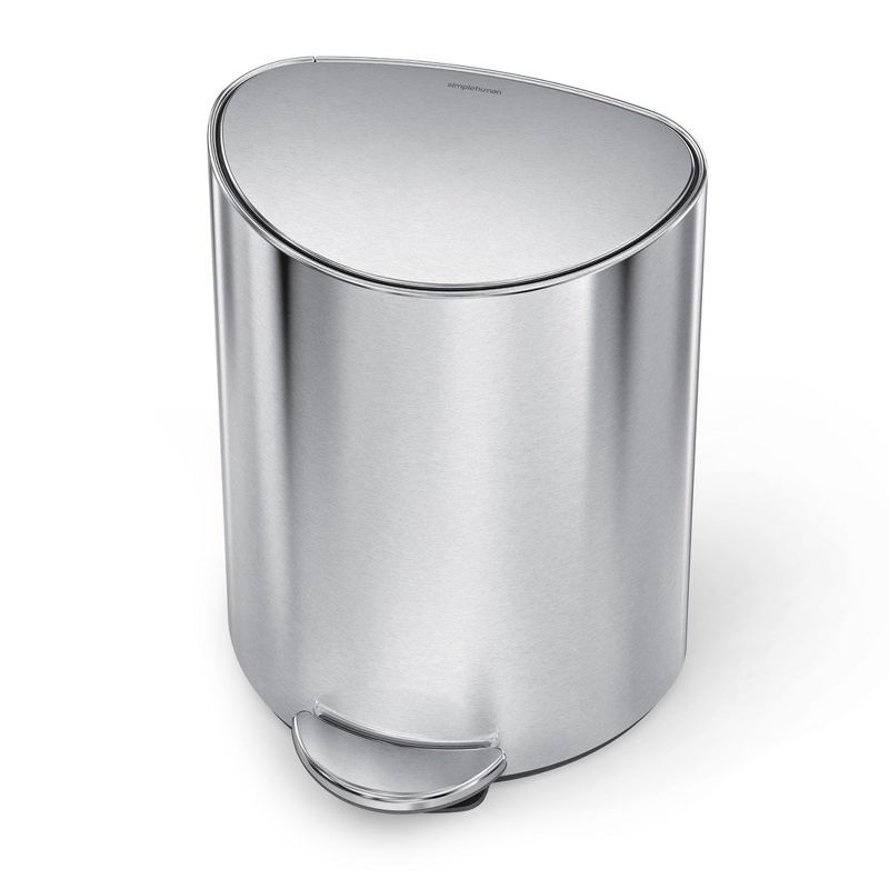 simplehuman 6 Liter / 1.6 Gallon Semi-Round Step Trash Can Bathroom Trash Can Garbage Bin, Brushed Stainless Steel