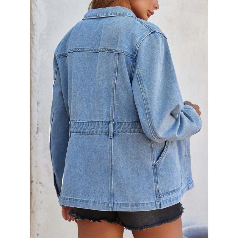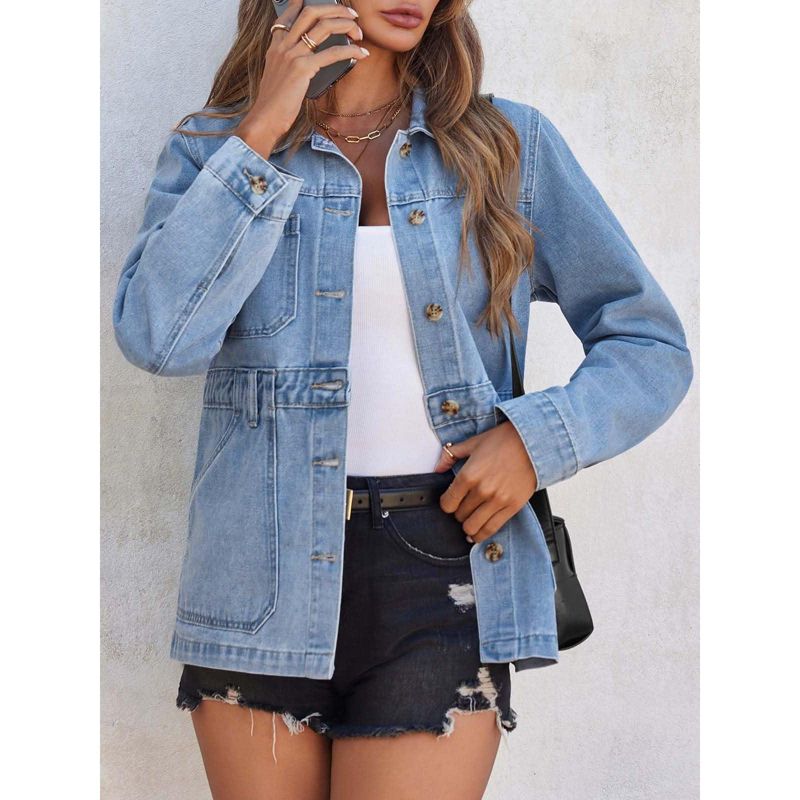 Imily Bela Denim Jacket for Women Distressed Jean Jacket Button Down Oversized Shacket with Pockets Light Blue L