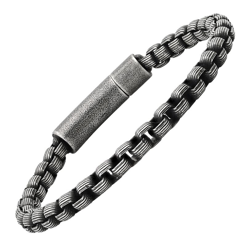 Steeltime Men's oxidized stainess steel round box chain bracelet