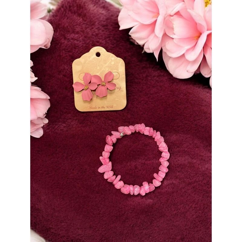 Michelle Marie Boutique's Pink Crystal Jewelry Set, Bracelet with Pink Dogwood Earrings
