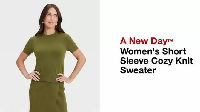 Women's Short Sleeve Cozy Knit Sweater - A New Day™ Green XS