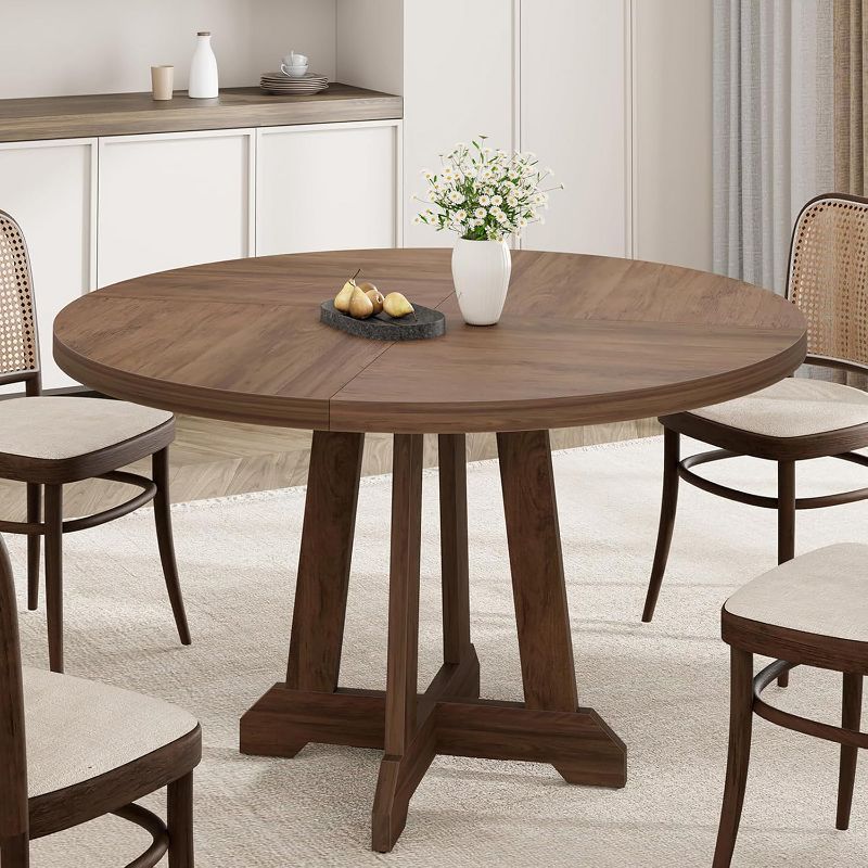 Round Dining Table for 4,Kitchen Dining Room Circle Dinner Pedestal Table,Space Saving Wood Kitchen & Dining Room Furniture