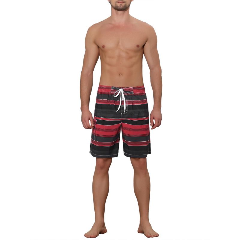 Lars Amadeus Men's Drawstring Stripes Printed Color Block Beach Pool Board Shorts Red 34