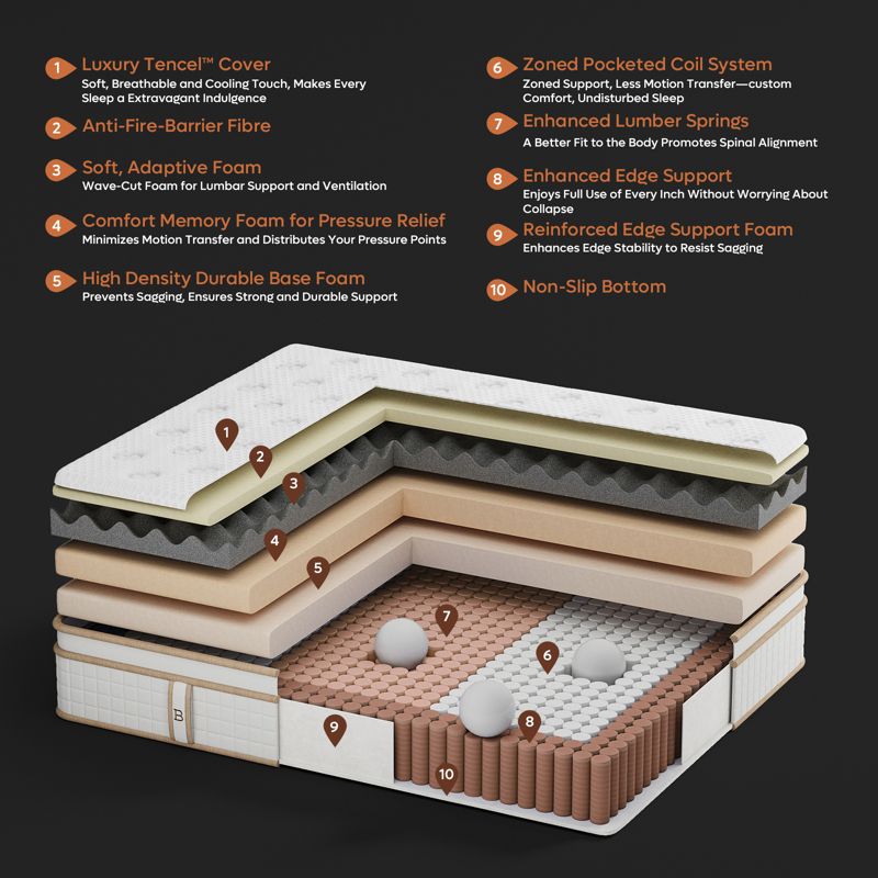 10 inch Full Size Tencel Medium Hybrid Mattress, Plush Layer and Cooling Gel Memory Foam Mattress in a Box