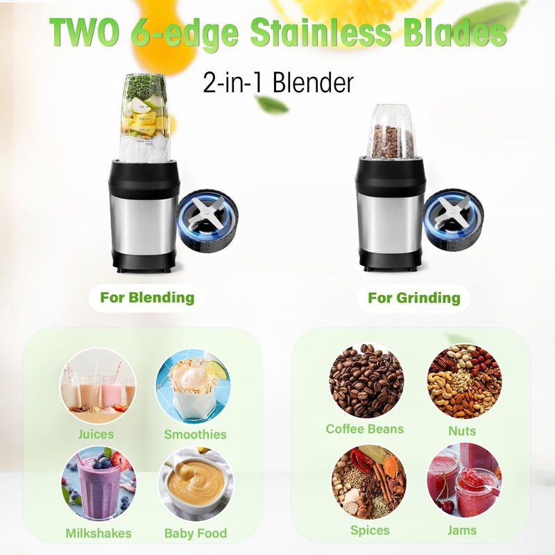 Itopfox 1200W High-Performance Blender for Smoothies, Ice Crushing with 2 Blades, Includes 23oz, 32oz, 37oz Portable Cups for Juices, Silver
