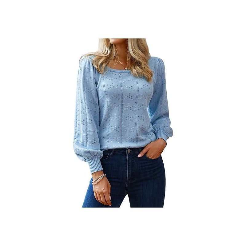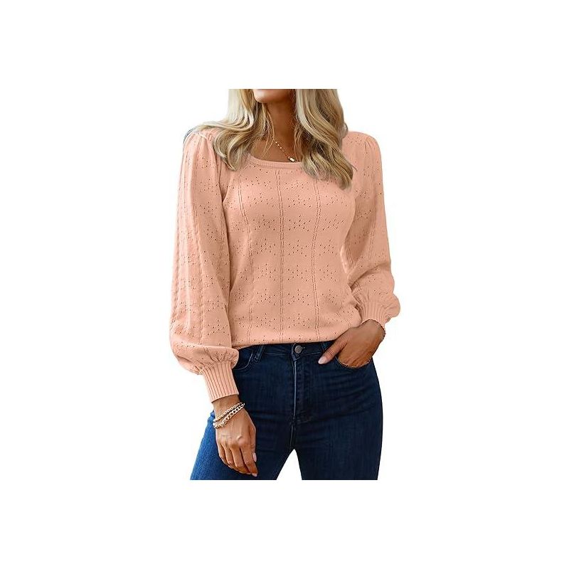 Zeagoo Sweaters for Women 2025 Fall Trendy Tops Casual Puff Sleeve Square Neck Cute Tunic Pullover Blouses White XL