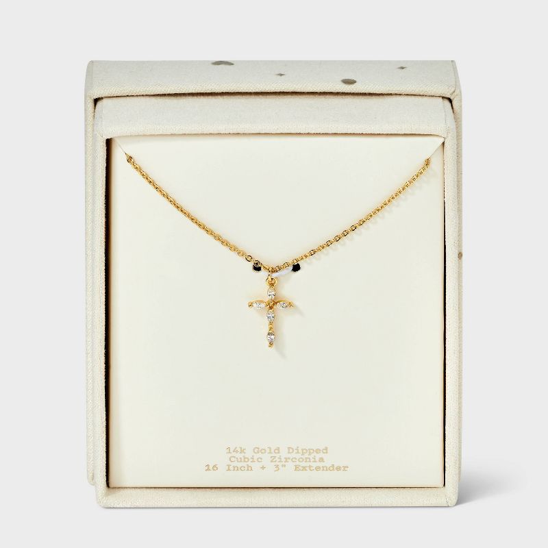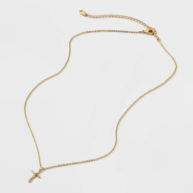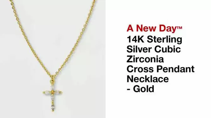 14K Gold Dipped Brass Cubic Zirconia Cross Pendant Necklace - A New Day™ Gold