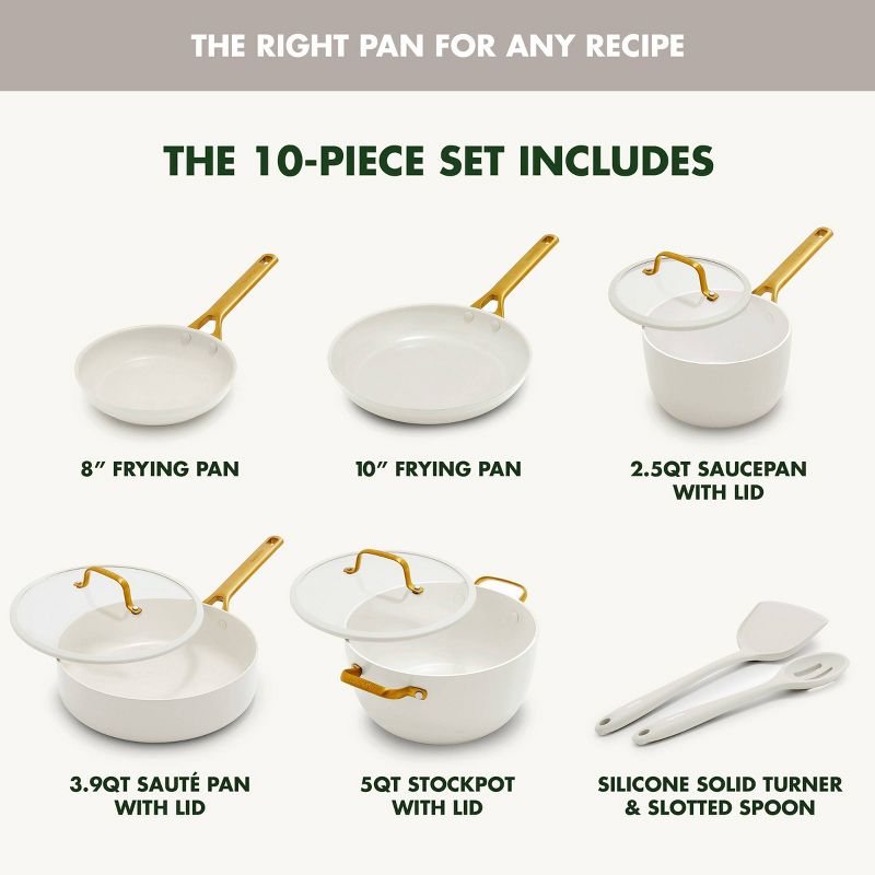 GreenPan 10pc Reserve Pro Ceramic Nonstick Cookware Set Cream