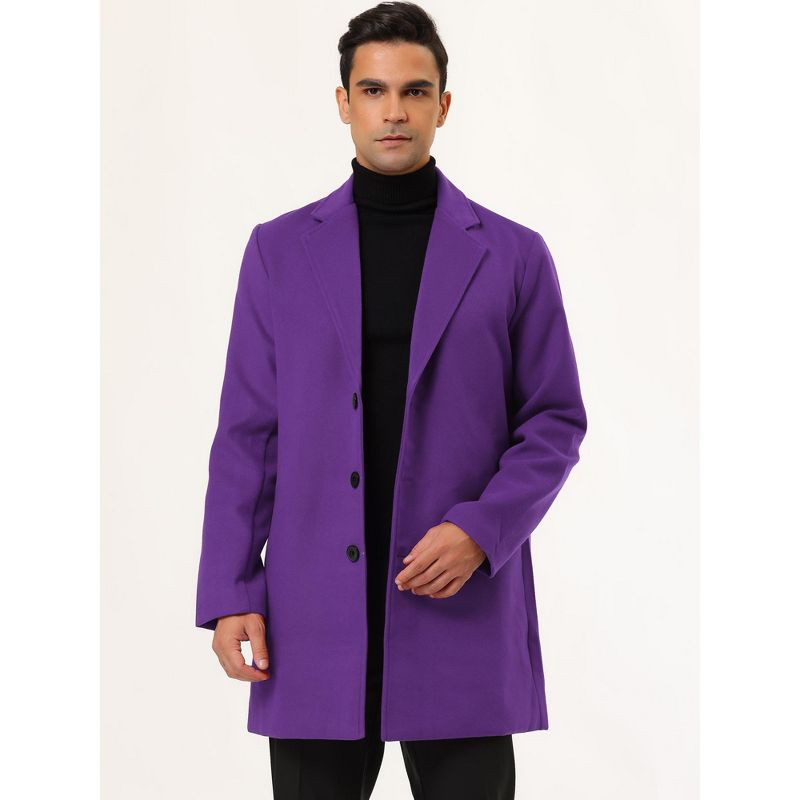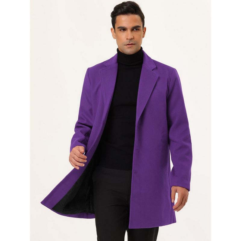 INSPIRE CHIC Men's Notched Lapel Single Breasted Winter Long Jacket Overcoat Purple Small