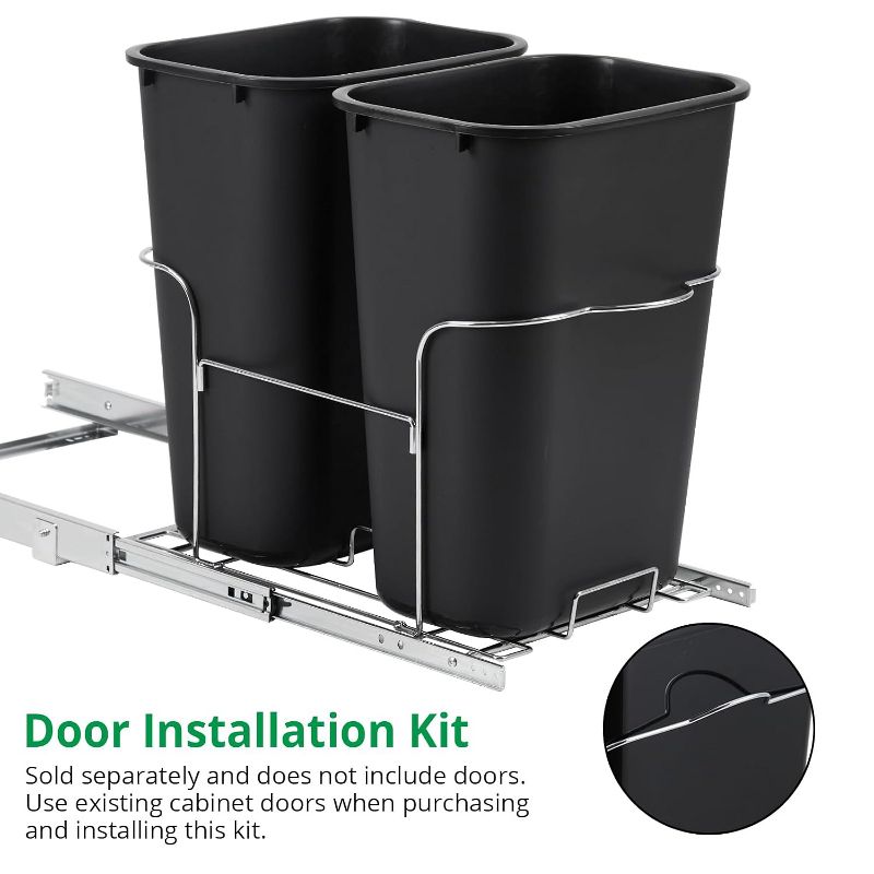 2x35 QT Double Bin Pullout Trash Can for Under Kitchen Cabinet, Space-Saving Garbage Recycling Bin On Full-Extension Slides, Heavy Duty Under Mount