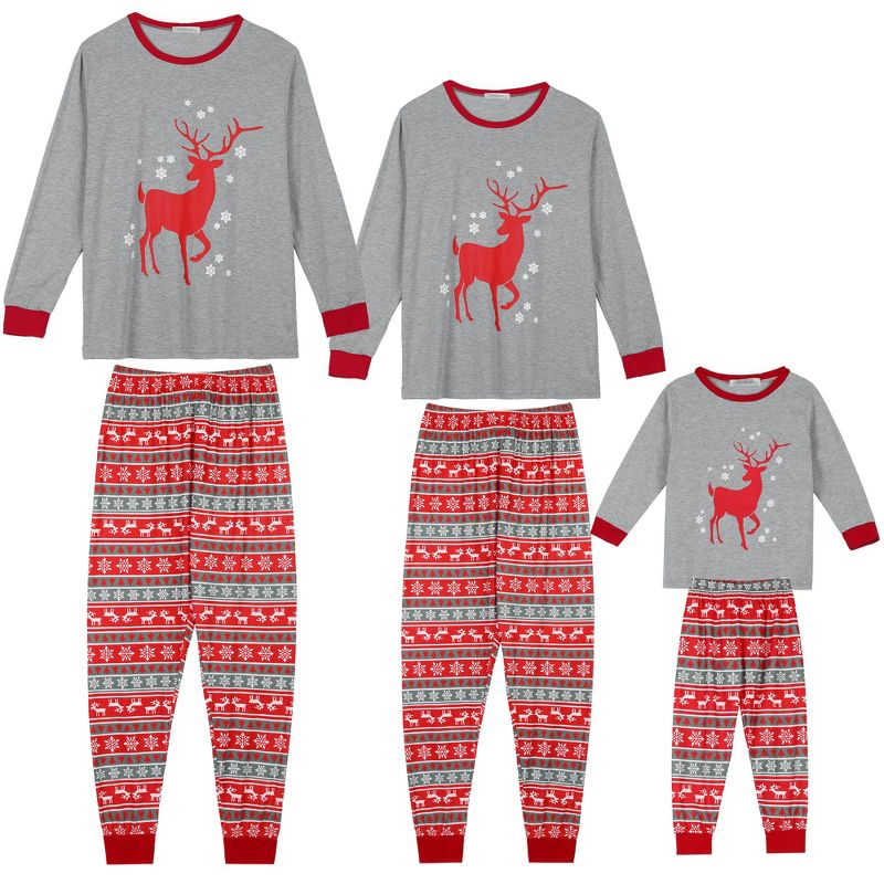cheibear Christmas Deer Print Long Sleeve Tee with Pants Loungewear Family Pajama Sets Red Women's X-Small
