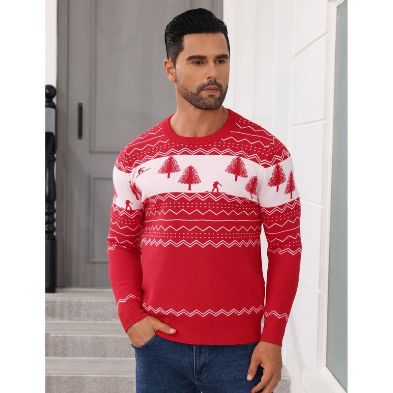 Coolmee Mens Ugly Christmas Sweater Pullover Long Sleeve Crew Neck Tree Print Soft Knitted Sweaters Red XL