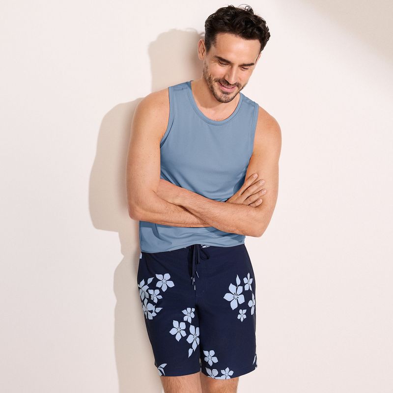 Lands' End Men's 9" Quick Dry Board Shorts - 36 - Navy/Dusty Blue Phlox Floral