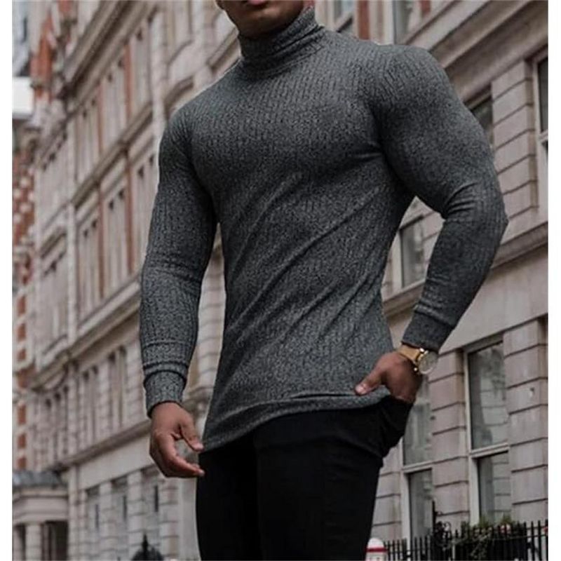Clearlove Men’s Stretch Muscle Fit Turtleneck Long Sleeve Knit T-Shirt Slim Casual Essential Dark gray XXL