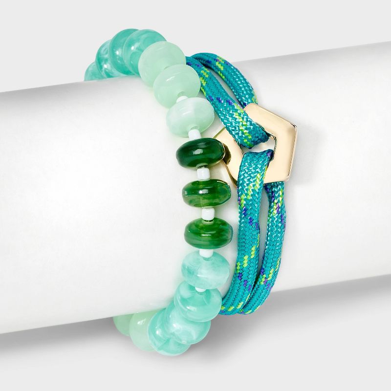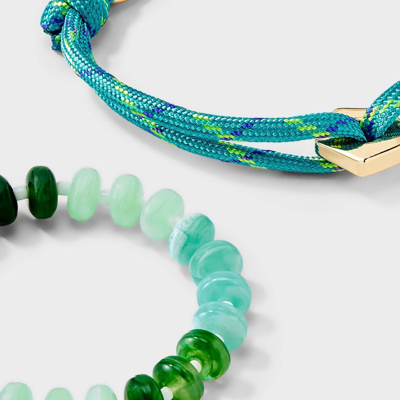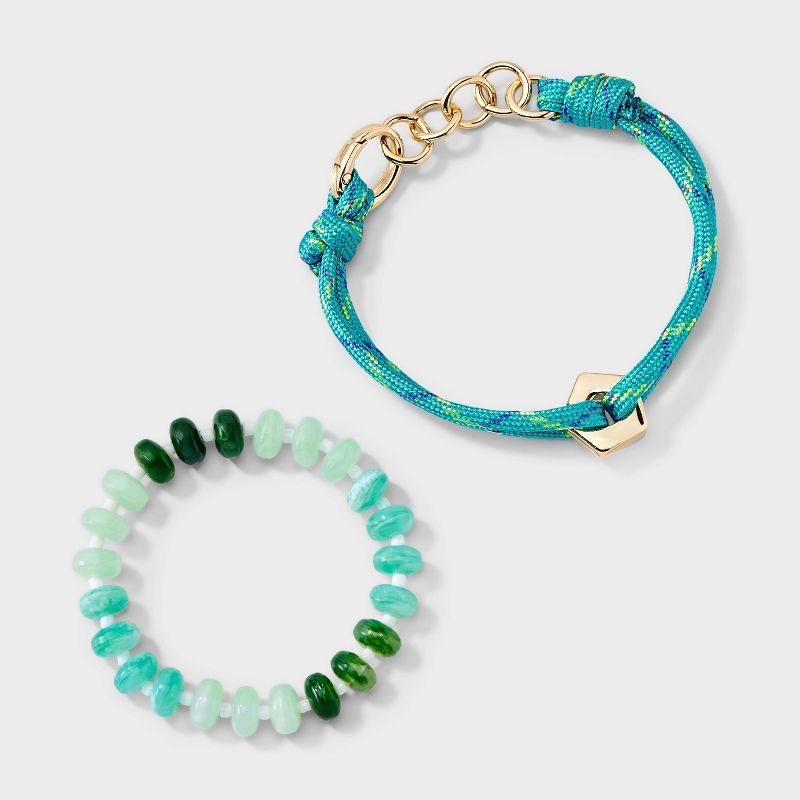 Beaded Corded Stretch Bracelet 2pc Set - Universal Thread™ Gold/Blue
