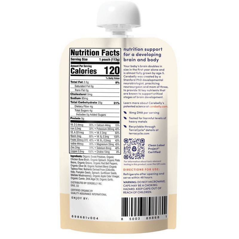Cerebelly Bone Broth Sweet Potato Pinto Bean Chicken Broth Baby Meals Pouch - 4oz