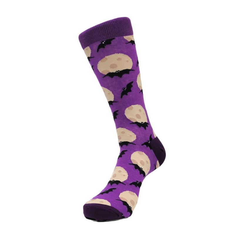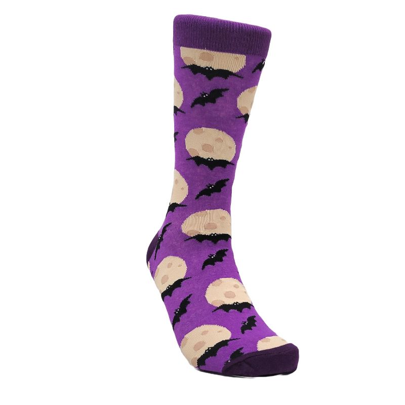 Bats and Moon Purple Socks - Large from the Sock Panda (Men's Sizes, Adult Large) Great for Halloween