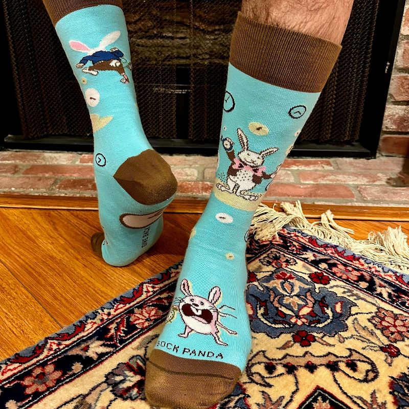 Time Bunny Rabbit Socks (Men's Sizes, Adult Large) from the Sock Panda