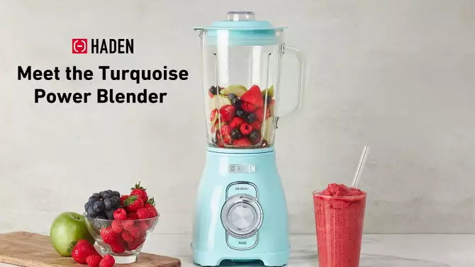 HADEN Power 5-Speed Blender with 1.75L Glass Jug Turquoise: 60 oz Capacity, Crushes Ice, BPA-Free, 700W, Hand Wash