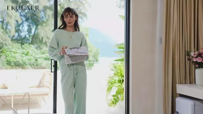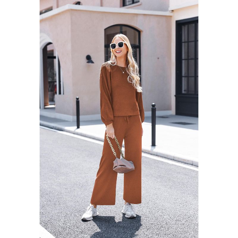 Ekouaer Knit Lounge Sets for Women 2 Piece Cozy Long Sleeve Pullover Sweater Top and Wide Leg Pants Set Pajamas Outfits Khaki XXL