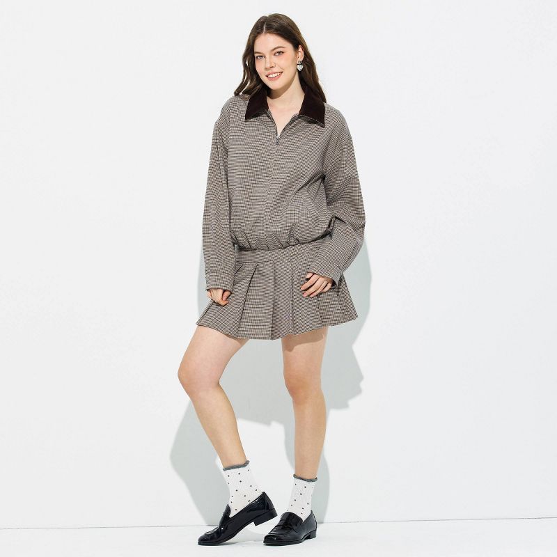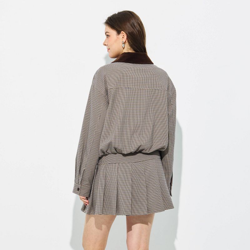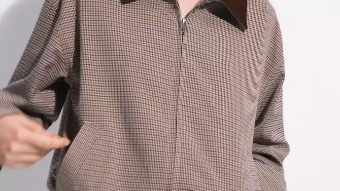 Women's Contrast Collar Bomber Jacket - Wild Fable™ Brown Houndstooth S