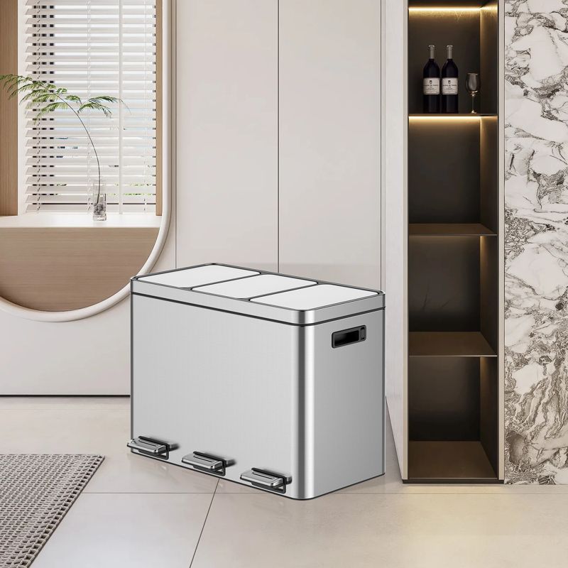 COZONY Trash Can with Lids, Pedal Stainless Steel Kitchen Recycling Bin with Odor Seal, Removable Buckets for Home, Office, Kitchen Trash Bin