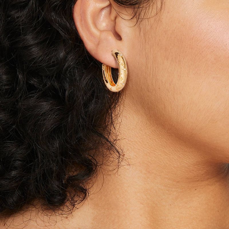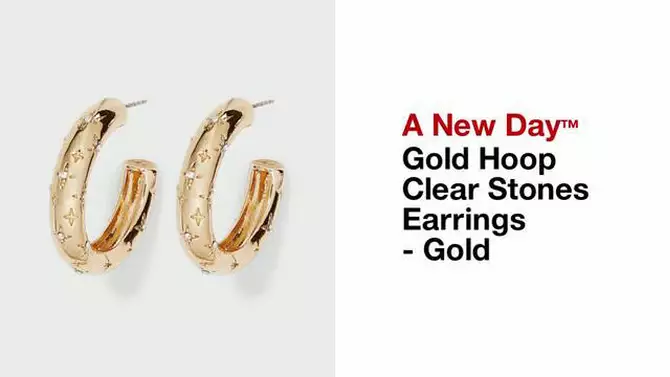 Gold Hoop Clear Stones Earrings - A New Day™ Gold: Nickel-Free Metal, Hypoallergenic, Post Closure, 1.21" Diameter