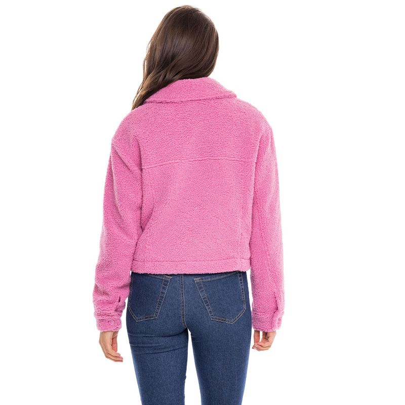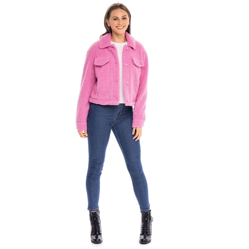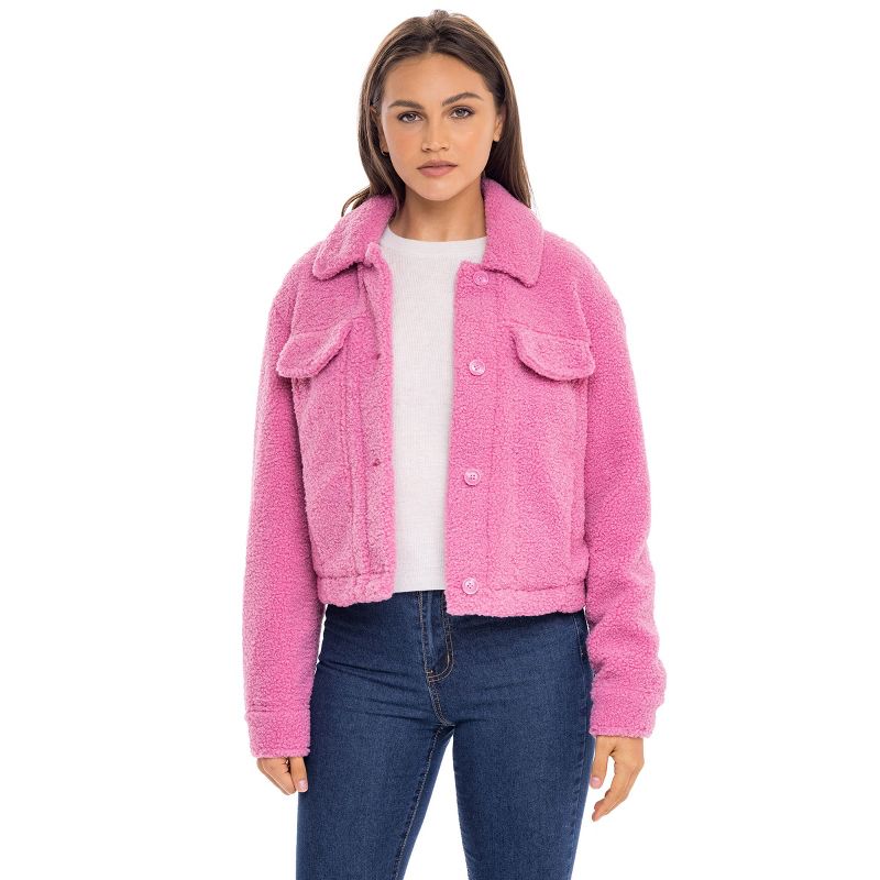 Women's Faux Fur Teddy Jean Jacket - SEBBY Hot Pink Large