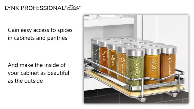 Lynk Professional Slide Out Vertical 6.25" Single Metal/Wood Spice Rack Silver: Sliding Kitchen Storage Organizer, Chrome