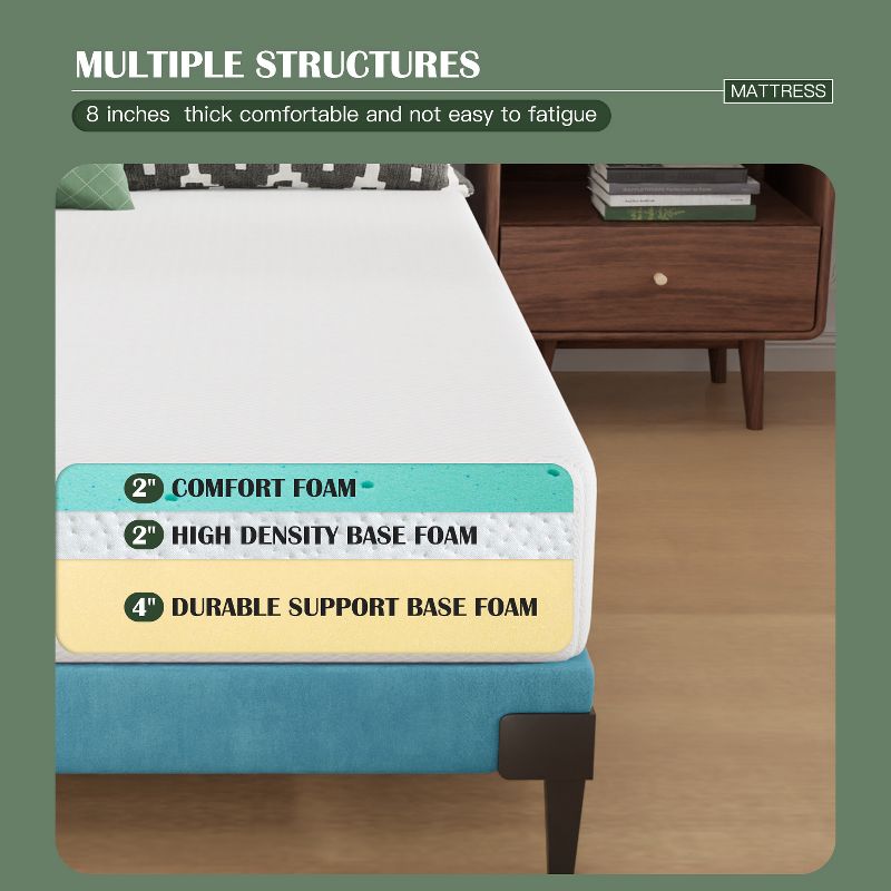 FDW Gel Memory Foam Mattress 8 inch Queen Mattress, CertiPUR-US Certified,Breathable Bed Mattress for Cooler Sleep Supportive,White Queen