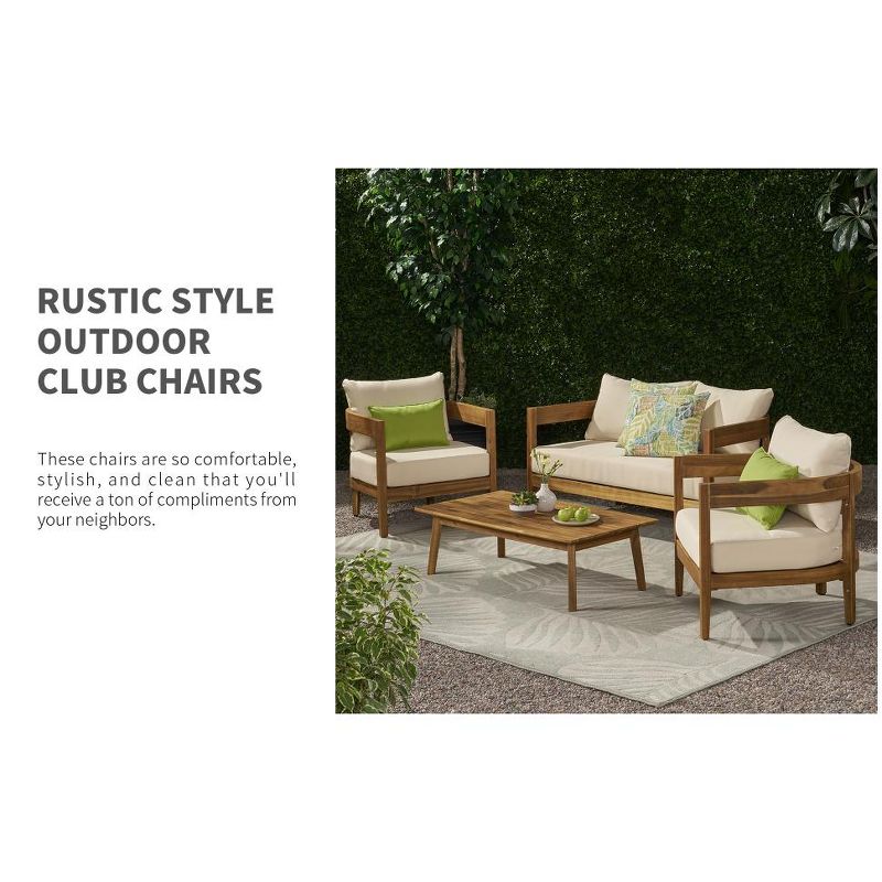 Christopher Knight Home Brooklyn Outdoor 4pcs Acacia Wood Chat Set with Cushions, Beige