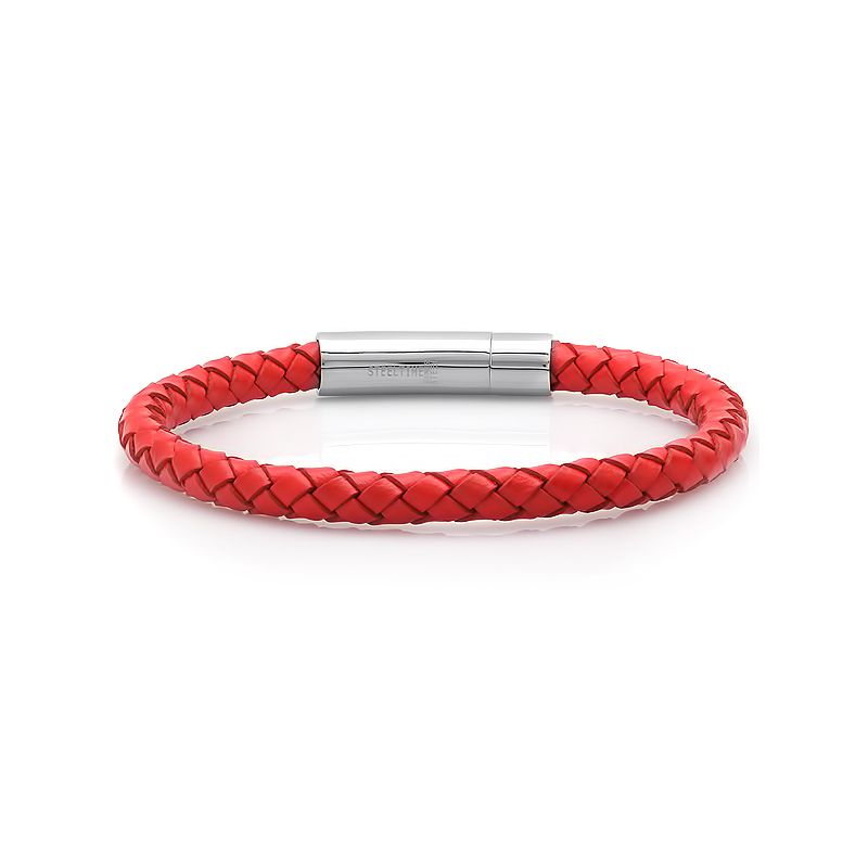 Steeltime Men's white genuine leather 8.5" braided bracelet in gray push n pull closure. Color Options: Black, Brown, Red, White, Blue