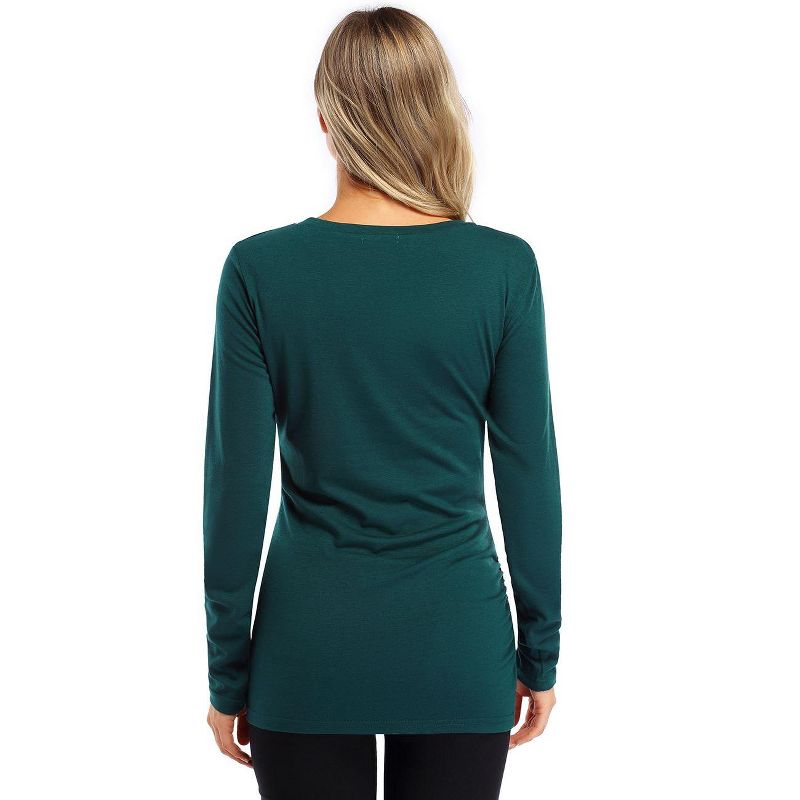 BLUEMING Womens Maternity Shirts Long Sleeve Crew Neck Basic Tank Tops Side Buttons Pregnant Shirts , Dark Green - M