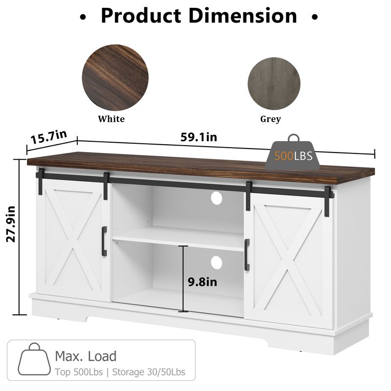 TV Stand for 65 Inch, Entertainment Center Farmhouse TV & Media Furniture Rustic TV Stands with Storage Living Room Barn Doors TV Console Table, White
