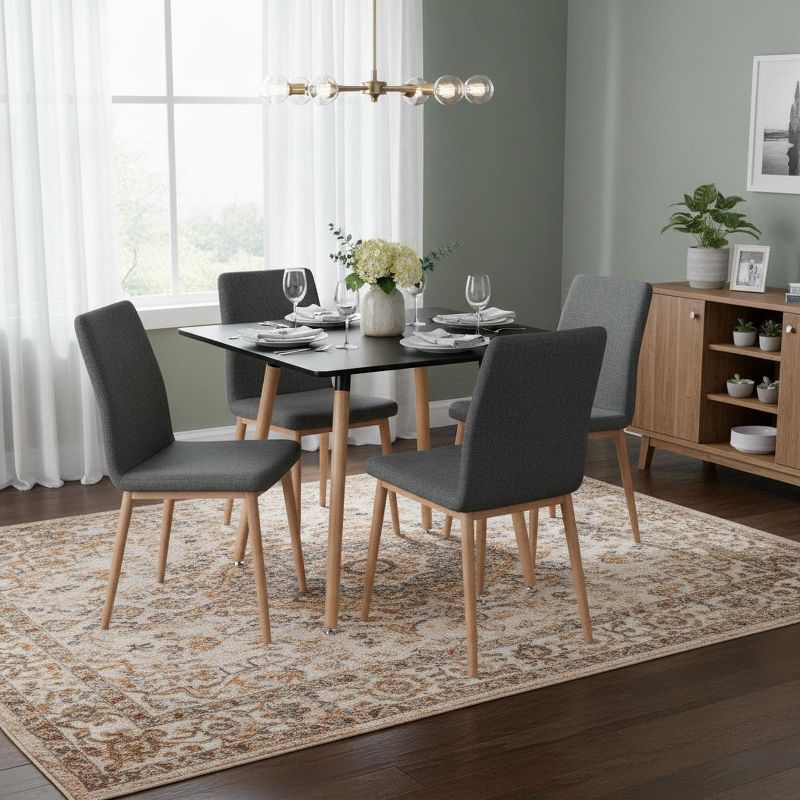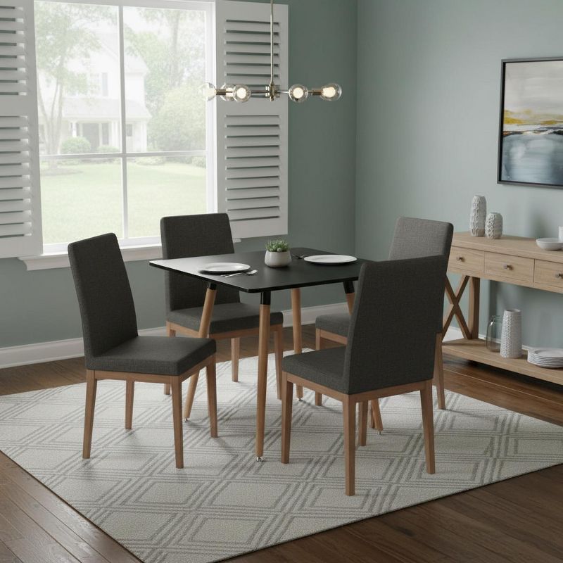FurnitureR 31.5 Inch Square Dining Table, Modern Mid-Century Dining Table with Wooden Legs, Small Kitchen Table for 2-4 People, Black & Natural Wood
