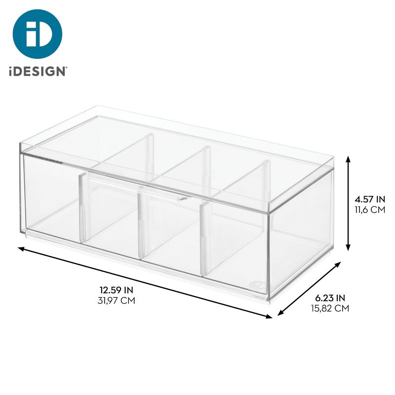 iDesign Set of 4 Stackable 4-Section Tea Storage Drawers - Clear