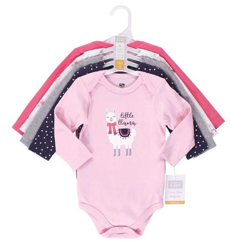 Hudson Baby Infant Girl Cotton Long-Sleeve Bodysuits 5pk, Little Llama, 3-6 Months