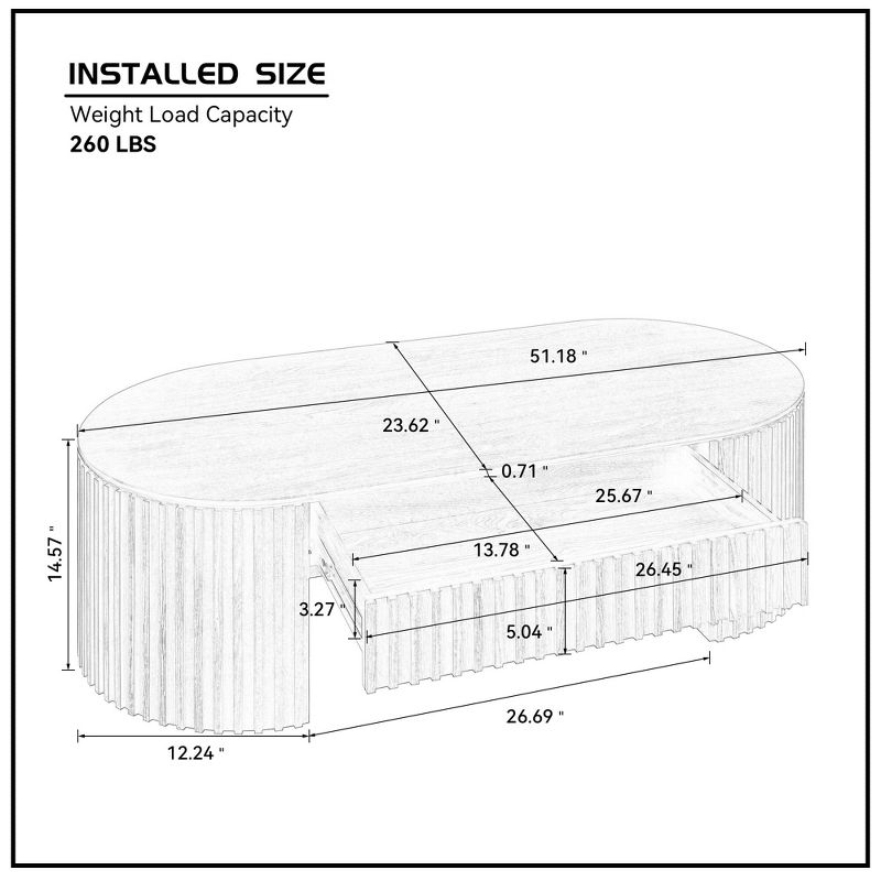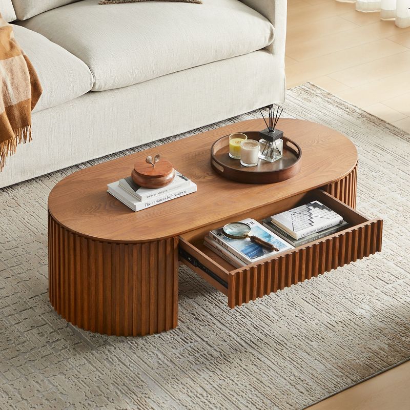 LOVSON 51.18'' Oval Wood Coffee Table With Drawer Mid Century Modern Coffee Table Unique Coffee Table for Living Room Furniture, Tea Table Brown