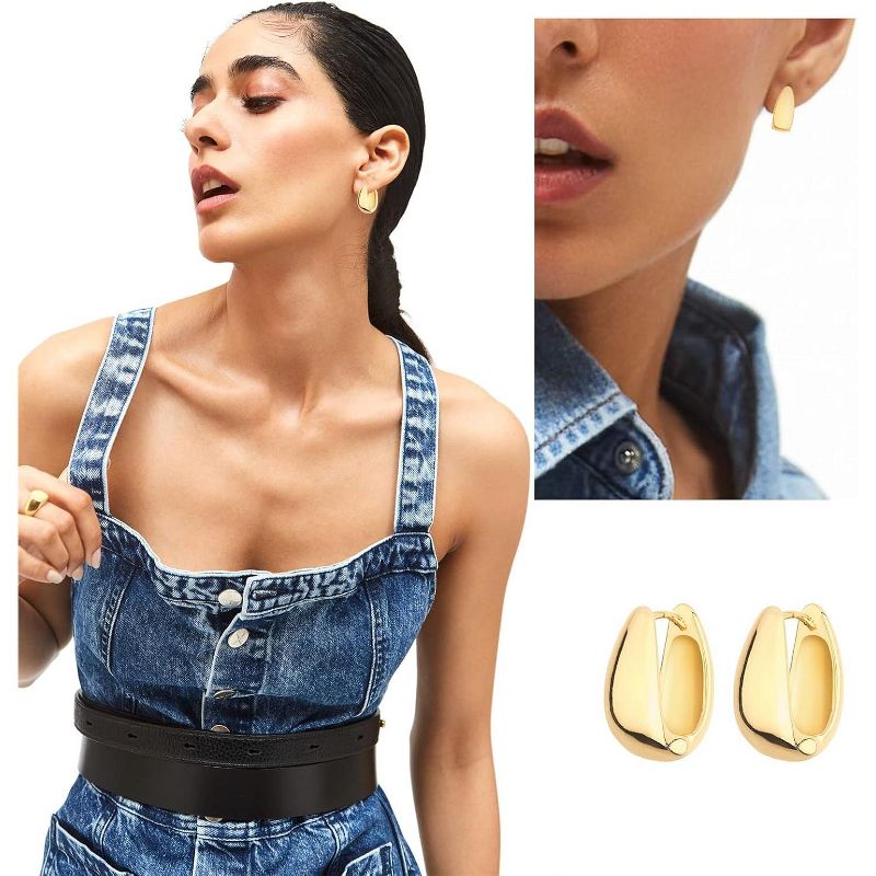 SmallRig 14K Gold Chunky Hoop Earrings Set - Thick Twist Huggie Hoops for Women, Hypoallergenic Statement Jewelry