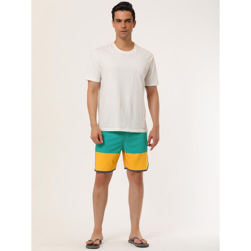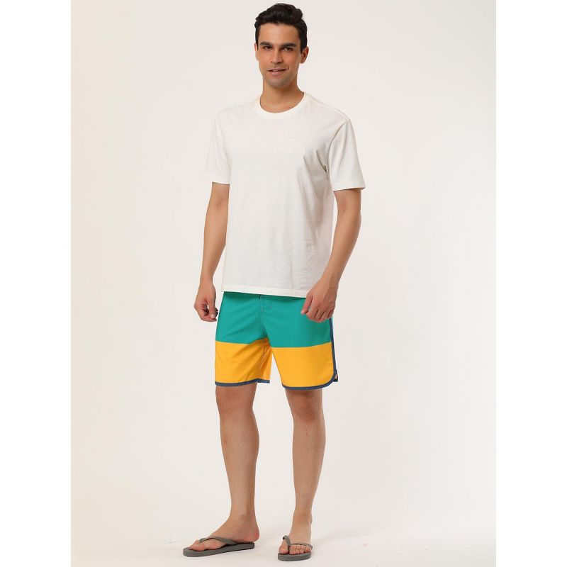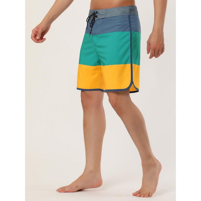 Lars Amadeus Men's Striped Beach Shorts Color Block Swimming Drawstring Board Surfing Shorts Yellow 32