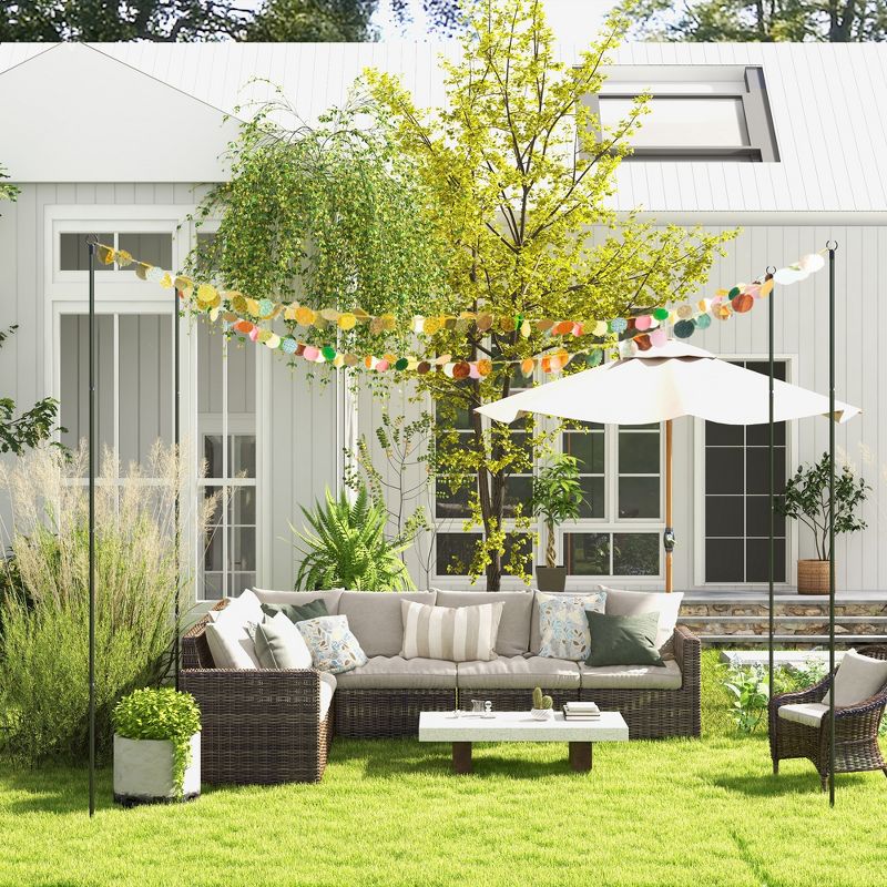Outsunny 4 Pack of 10' String Light Poles, Steel Hanging Lighting Stand for Patio, Backyard, Deck, Wedding, Party, Black