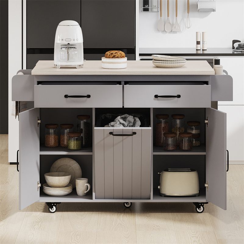 XINGHANZHENXUAN Gray Kitchen Island with Trash Can Storage Cabinet, Kitchen Cart with Drop Leaf, Spice Rack, Towel Rack and Drawer