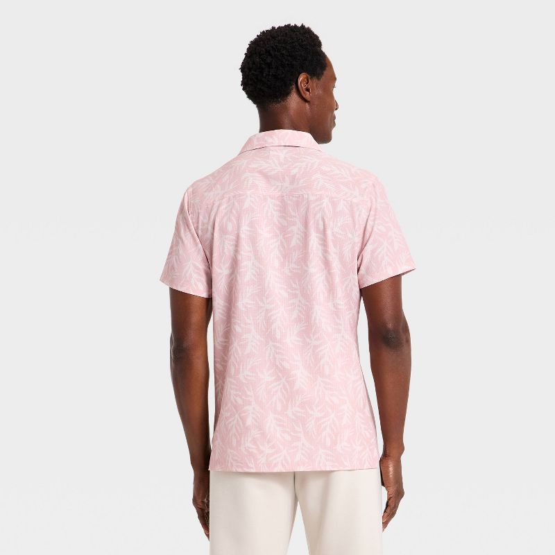 Men's Short Sleeve Button Up Camp Collar Shirt- All In Motion™ Pink M