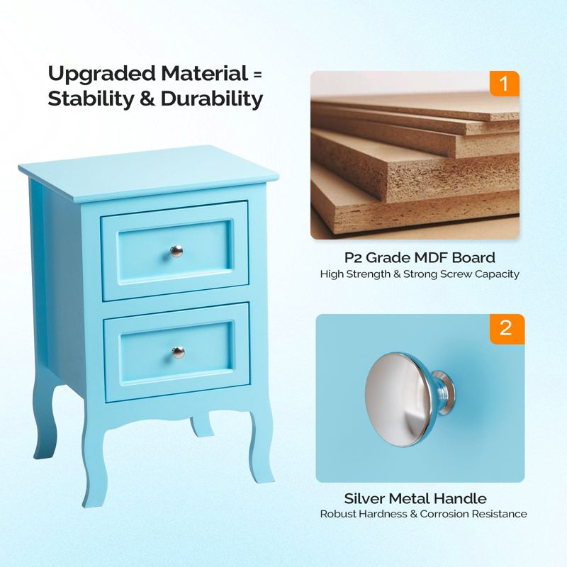 Bonnlo Nightstand with 2 Drawers, Night Stands for Bedrooms, Small Bed Side Table/White Night Stand with Drawers for Small Spaces