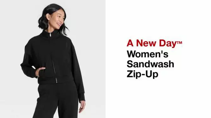 Women's Sandwash Zip-Up - A New Day™ Light Green M