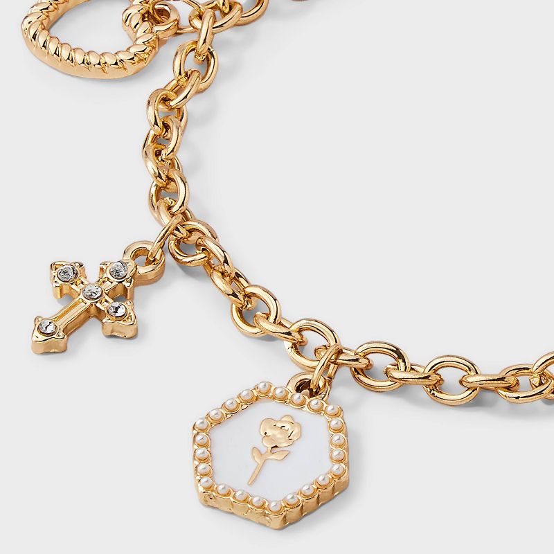 Girls' Charm Bracelet with Hearts, Bow and Cross Charms- art class™