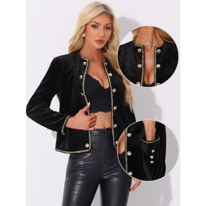 Allegra K Women's Velvet Elegant Collarless Cropped Work Open Front Blazer Black Medium