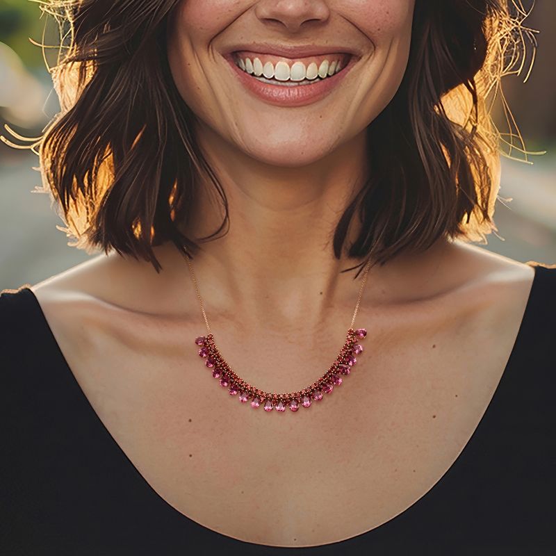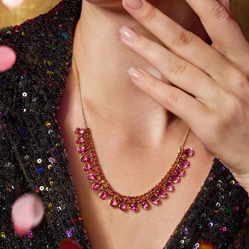 Ross-Simons 16.00 ct. t.w. Pink Topaz and 9.00 ct. t.w. Garnet Necklace in 18kt Gold Over Sterling Size 18